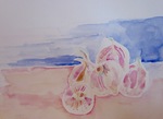 - groentehapjes van acryl en aquarel op papier en doek