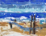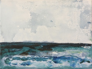 2018acryl, zeewater en zand op doek